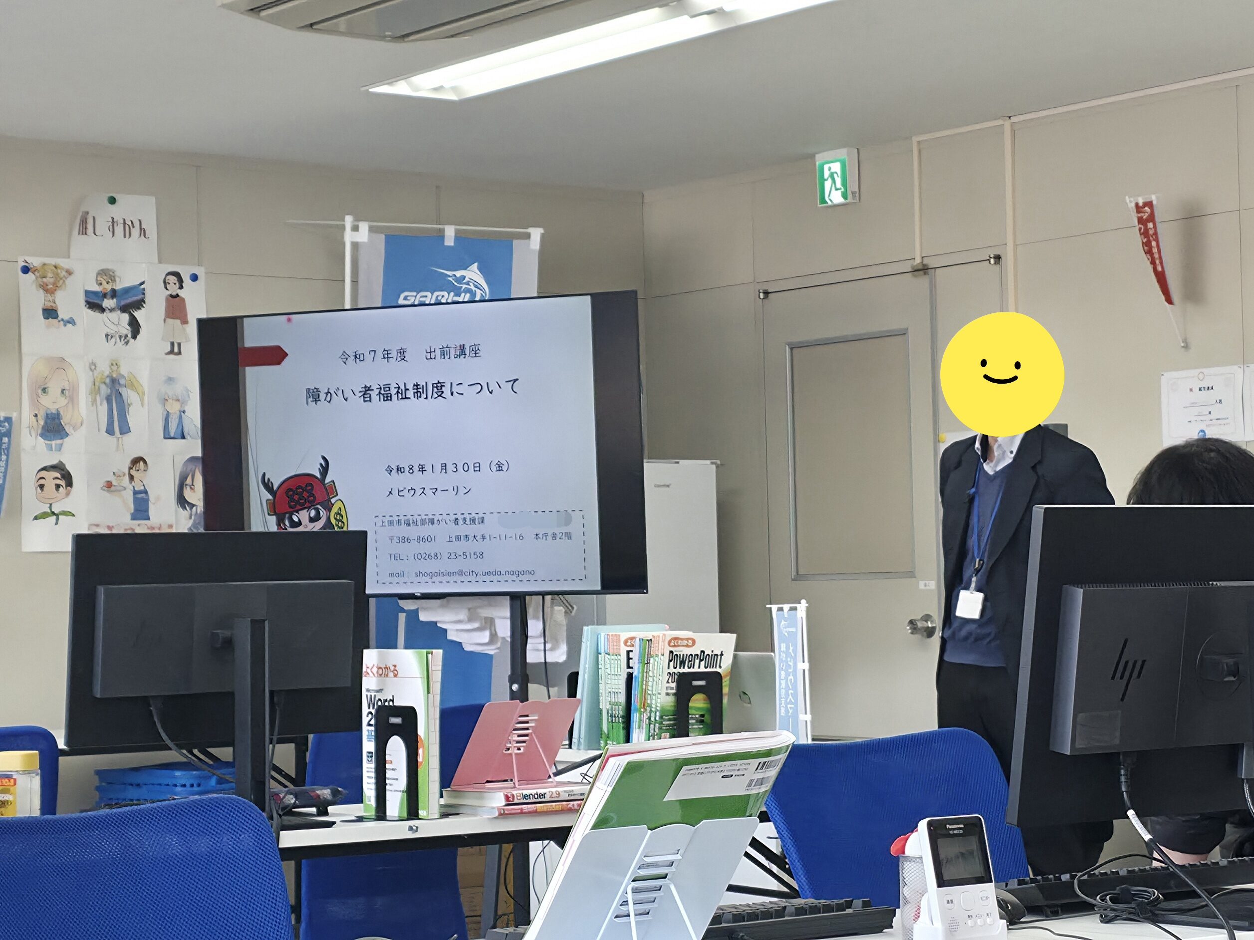 先日、上田市福祉部障がい者支援課の方をお招きして「障がい者福祉制度について」の出前講座を開催しました!