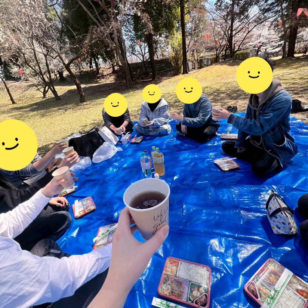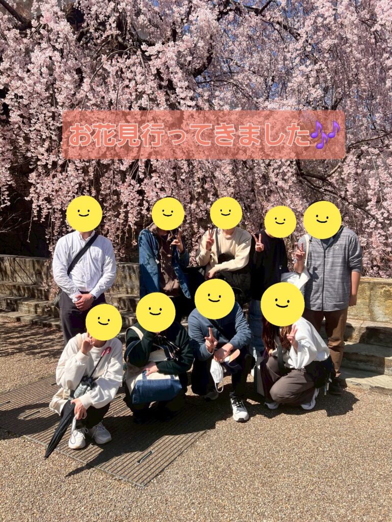 柔らかい表情でコミュニケーションを取ったり、桜の写真を撮ったり、
